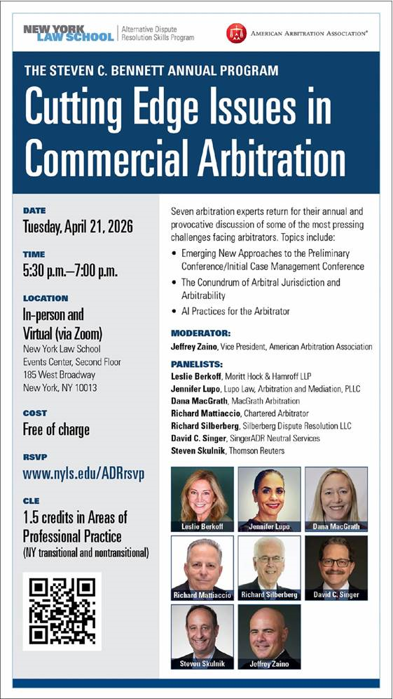 Leslie Berkoff Panelist At New York Law School’s & American Arbitration Association’s 2026 Commercial Arbitration CLE Program